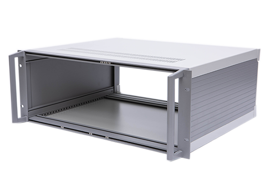 B型機箱由上蓋板,下蓋板,前面板,后面板,側板,前后梁,帶耳把手等配件組裝而成,為機架式機箱,把手兩側帶有耳朵直接固定的機器內。