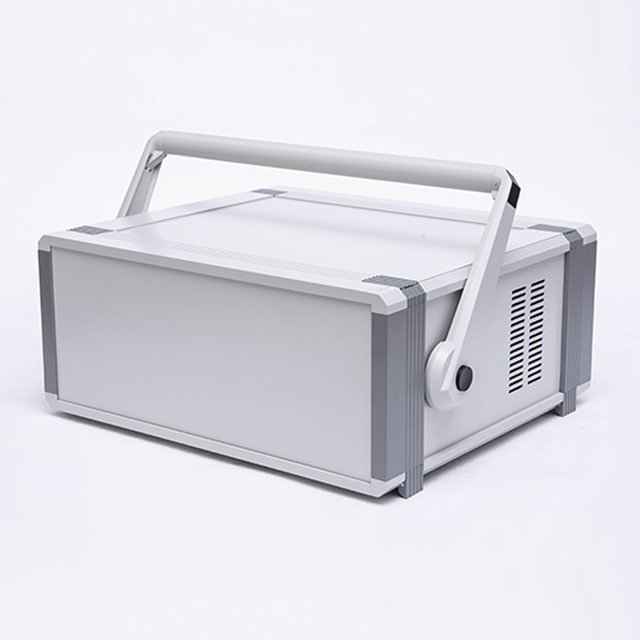 A型機箱由上蓋板,下蓋板,前面板,后面板,側板,底腳,把手,前后梁等配件組裝而成,為臺式機箱。標配型機箱表面經噴塑處理,噴塑的塑粉顏色可以按照客戶要求選定,白、灰色為行業首選的經典顏色。