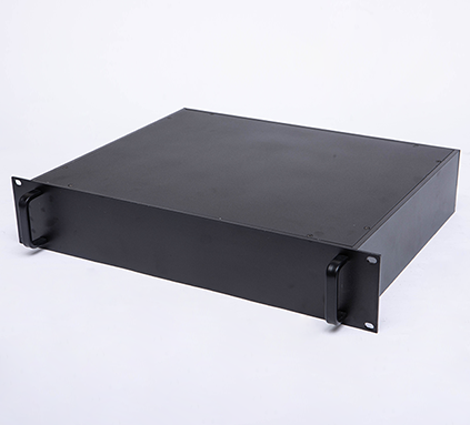 B型機箱由上蓋板,下蓋板,前面板,后面板,側板,前后梁,帶耳把手等配件組裝而成,為機架式機箱,把手兩側帶有耳朵直接固定的機器內。